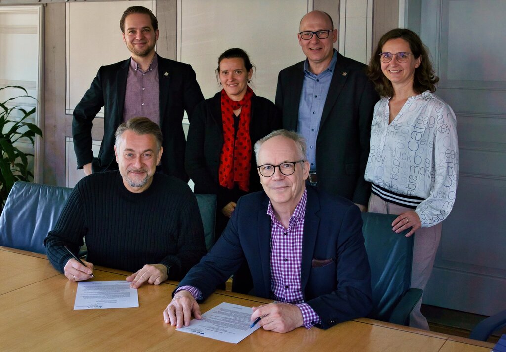 Die Unterzeichnung erfolgte durch Bürgermeister Ivica Lukanic und Carsten Koops (Geschäftsführer des BS GUV) im Beisein von Sandra Hecker als zuständige Präventionsberaterin und Referentin, Kai Kratschmer als zuständigem Dezernenten, der Fachkraft für Arbeitssicherheit Wolfgang Retzlaff sowie der Koordinatorin für Arbeitsschutz Sandra Winkler.